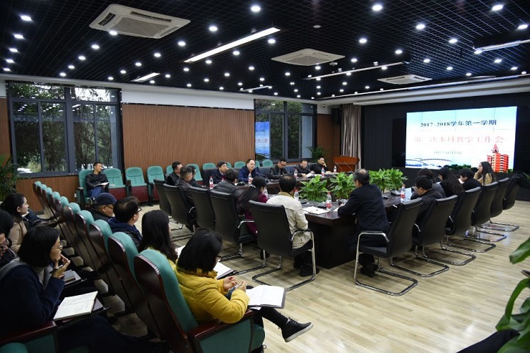 对于后半期的工作,严处长强调,首先要加强十九大精神的贯彻学习,通过各种方式使十九大精神进课堂,进头脑,用十九大精神激励教师和青年学子奋发有为。而践行十九大精神从具体的事情而言,就是各院系要继续加强师德师风、教风学风建设,严守教学纪律和教师职责,遵守教学规范、改进教学方法,教学相长,营造良好的学习氛围,提升学生满意度。各院系还要进一步提高工作积极性、主动性、创造性,提升管理和教学效果;要加强院系管理人员的培训,多出去走访调研学习,加强教学秘书、行政人员的培训,不断提升改革创新能力;要不断提升教学管理的严肃性、科学性、有效性,课程教学大纲、教案、试卷、论文的各环节严格把关;听课制度、导师制度、实践周制度、18周行课制度、教授上课制度要严格落实;级别考试、创新创业、国际合作等要通过各种激励措施得到保障;各院系要积极配合本科教学审核评估迎评促建工作,通过评估准备发现问题并及时解决,通过自评找到不足,加强和改进各方面工作,提升院系建设、学科专业改革和人才培养工作的质量,服务学校整体改革与发展。